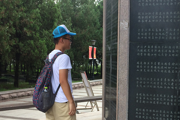 在队长的带领下,队伍抵达孟良崮战役红色景区进行红色文化的学习。正对大门的战士雕像和背后的两座红色高山透露出历史的沧桑,在这样一种气氛的熏陶下,队员们怀着沉痛的心情参观了在此役中壮烈牺牲的烈士陵园,一方方墓碑和一条条英烈亭记载了多少烈士的英雄事迹。恰逢此时,队伍遇见了一行人正进行庄严的入党宣誓,队员们深受感染。当日下午,队员们参观了和平而幽静的荷花池以及颂扬此役功德的书法碑林,队员们接受了心灵的涤荡,也深受孟良崮一役“气贯长虹”之感染。活动结束后,我队偶遇山东建筑大学的调研团队,两队队员愉快地交流了参观感受,并且交换了调查问卷,打破了单个队伍的认知限制,队员们受益匪浅。