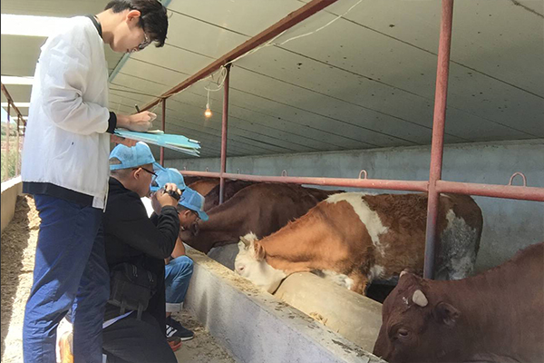 次日,队伍抵达陇西县文峰镇宏伟乡,走访了宏伟乡建军养殖中心。建军养殖中心分肉牛、肉羊、肉猪三个养殖繁育场,队员们深入其中的肉牛繁育场,进行更细致地了解。繁育场的工作人员为队员们细致地讲解了牛肉繁育场的建立过程、育种过程以及发展现状。对队员同学所提出的关于牛的种类、出栏时间、净重、净肉率、销售情况、疫病防治、饲料等问题工作人员一一耐心回答。与工作人员简单交谈过后,队员们深入繁育场,帮助工作人员记录牛的生长状态,打扫繁育场内的卫生。此次走访调研,队员们不仅了解了肉牛的繁育场的基本情况,还体验养殖场的生活,学以致用,大家纷纷表示十分受益。