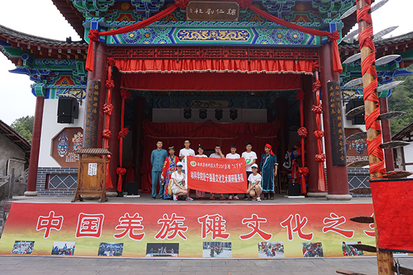 傩戏——古时用于天子所命的庄严祭祀,后逐渐发展至民间,成为去疫、酬神的仪式。最初的戏剧便是由傩戏发展而来,因此傩戏又被称为戏剧活化石。带着极大的兴趣,av在线“赴宁强县文化艺术调研服务队”全体成员驱车前往羌族傩戏文化之乡青木川,并拜访傩戏演绎者郭大爷,从而了解傩戏的起源与发展。听闻来访者是调研傩戏的大学生,郭老开心不已,连忙招呼自己的徒弟和女婿为我们表演。因为时间问题,郭老选取傩戏中最为经典的“上刀山”与“下火海”。