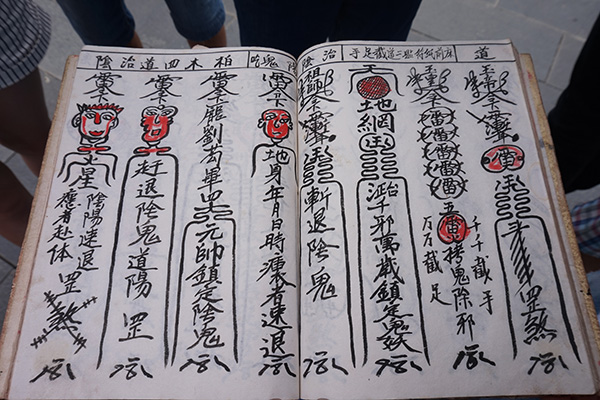 文化,因为传承而永存,因为坚守而美丽。在之后的交谈中我们了解到,破四旧时期,傩戏被当作封建迷信加以摧毁,其文化形态遭到严重的摧毁,只在某些偏僻落后的山区还有所保留。郭老世代以傩戏为生,加之本身对傩戏的热爱,他才在文化风波中舍命保存有关傩戏的书籍。21世纪,国家对傩戏文化的发掘、抢救、保护和研究尤为重视,各地许多傩戏文化项目被列入省市和国家非物质文化遗产名录。现如今,郭老也将这门古老的羌族文化传给自己的弟子及女婿,希望它永世流传。