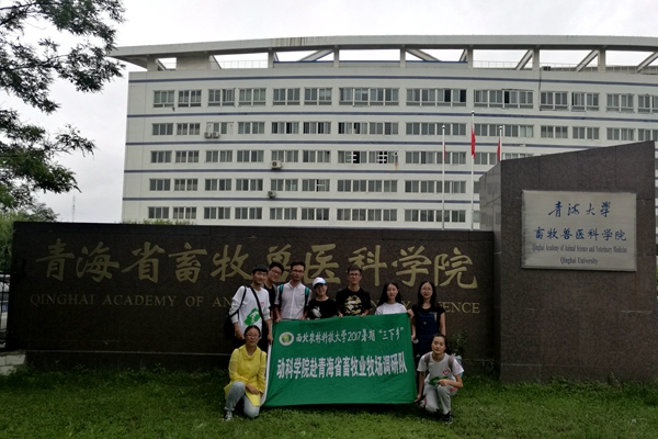 队员们在青海大学畜牧兽医科学院门前合影留念