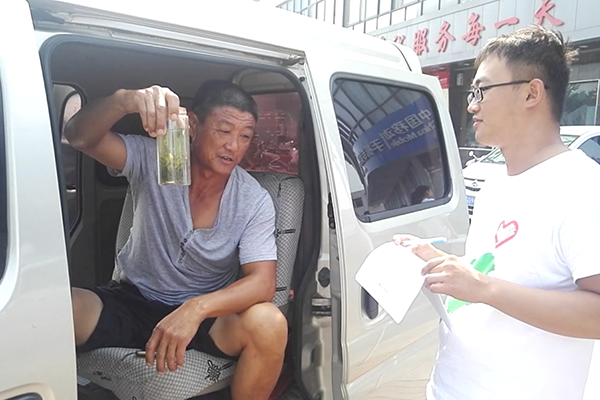 队员们在巨峰镇中心进行当地居民对于绿茶的喜爱程度的调查,有两位居民队员们至今仍记忆深刻。一位是经营者一家小包子店的阿姨,虽然生意很忙但她依然高兴地接受了队员们的采访。她坦言周围的人都爱喝茶,爱人也是每天离不开茶壶,自己虽然一般不喝,但是对于茶叶的很多知识都是非常熟悉。另一位是司机师傅,他也很高兴地接受了队员们的采访。采访过程中,他顺手拿起了自己的茶杯,向队员们展示自己对绿茶的热爱。“我很喜欢喝茶,每天喝茶就是我们的一个习惯。”茶,已然是当地居民生活的一部分。