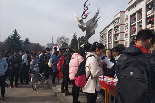 同学们在横幅签字
