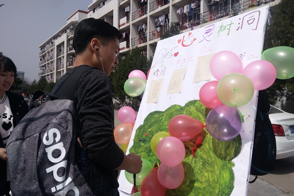 暖春时节是学生心理问题涌现的高发阶段。为了让同学们正视自己的问题和困惑,给学生搭建一个 “宣泄、表达、倾诉、慰藉”的平台,3月25日,av在线心理健康部在西区雕塑举行 了以“心愿树洞,宣泄压力”为主题的心理咨询活动。