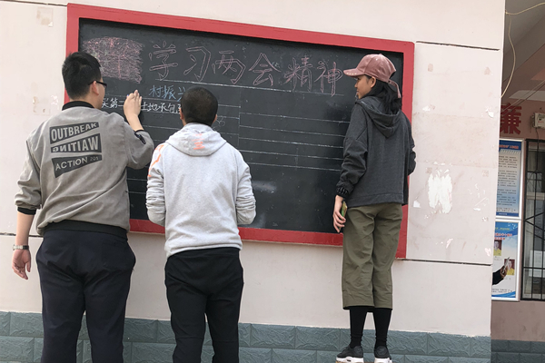 “我希望能够通过我们的努力,让更多的村民了解时事动态,了解政策走向,尽我们最大的努力为村民们服务。这也是我们村助工作的意义所在。”参与本次活动的梁旭辉同学说道。村主任也就本次活动发表了一些看法:“村助政策的设立对村子的影响也很大,相信经过同学们的努力能够更好的宣传两会精神,让村民们更好的理解两会精神。”