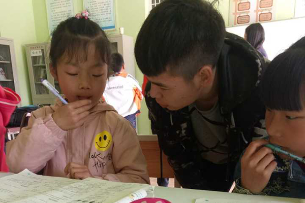 志愿者为孩子们辅导课业