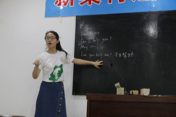 在家访时,服务队强烈感受到了学生家长对提高孩子成绩迫切的希望,大多数家长还着重强调了英语方面:家长本身文化程度不高,相较其他科目,英语更难进行有效的辅导,孩子又是新接触英语,学起来也不比其他科目轻松。为解决这一问题,服务队安排了更多的英语课,由来自外语系的队员刘楚和英语成绩优异的队员段屈雨作为老师代课,并根据孩子们基础的差别,分大班和小班同时开课,进行有针对性的辅导。