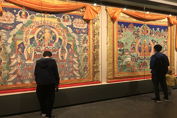 随后,队员们来到了青海省博物馆。省博物馆中包含了各类藏品及文化,其中有讲述青海城镇化进程、藏区发展、讲述青海当地生物产业发展等各类现代工业进步。生物产业为依托特色生物资源,构建虫草、枸杞、沙棘、牛羊肉、青稞及油菜花等综合利用构成产业链,已经形成健康食品、功能食品等系列产品。最吸引人眼球的还是各种藏品—鎏金释迦摩尼像、藏毯、各类唐卡、出土的各类文物等等。金桐铸造工艺分为冶炼、硼砂、雕刻、磨光、鎏金5部分。其中最令人叹为观止的就是唐卡文化了,唐卡总分为两大类,止唐和国唐。止唐中有红唐、金唐、墨唐;国唐中包含剪贴唐卡、堆绣唐卡、纳纱绣以及刺绣唐卡。博物馆包含的是整个城市从古至今的缩影,队员们对青海文化有了更深的了解。