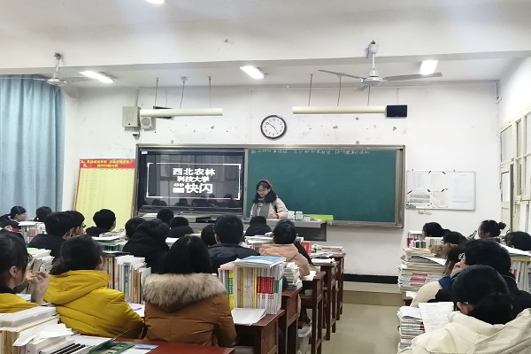 为积极响应校团委招生办开展优秀学子回访母校的号召,为了增强学校的影响力及增添校园风采,2020年1月16日下午,来自动科学院、园艺学院、食品学院、水建学院、资环学院、农学院等九名同学走进西安市鄠邑区第一中学高三15班,进行了回访母校活动。