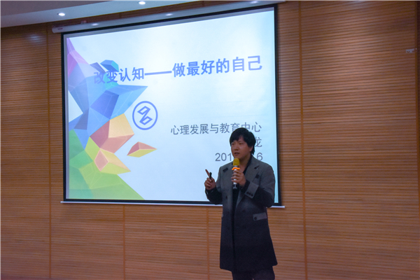 为帮助大一新生完成从高中到大学的心理过渡摆,脱高中时的稚嫩,真正进入大学的学习生活,成为一名合格、优秀、身心健康的当代大学生,近日,学院特邀校心理窦龙老师在4129报告厅为全体18级同学做了大学生心理健康专题报告,现场座无虚席。