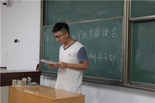 解读会上,耿慧君,赵冬玥等同学宣读了各项文件,组织学生重点学习《av在线 关于进一步加强大学生学风建设的实施意见》、《av在线 本科生学籍管理办法》和《av在线 教学区学生文明行为规范》,特别是学籍管理办法中关于学习考核与成绩记载的相关内容,加强政策解读及宣传,确保学生能了解并熟知政策变化及影响。