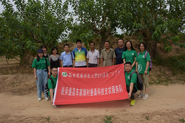 为全面实现乡村振兴战略,聚焦精准扶贫,促进乡村专业发展,实现乡村富足、人民富裕的伟大梦想。7月19日,av在线 赴吴堡县车家塬村蚕桑科技支农服务队由付中华老师带领其研究生团队前往车家塬村。县团委薛书记与县团委驻车家塬村第一书记任星垒、车家塬村支部书记刘明亮以及村主任刘光辉一同前往车家塬村蚕桑调研地展开对当地蚕桑产业的调研。