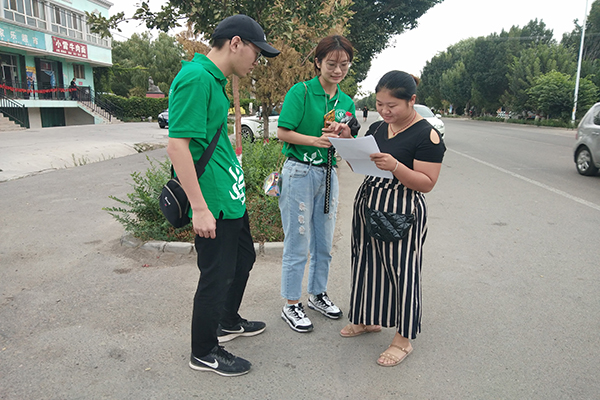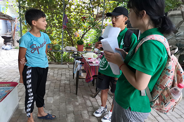 下午,队员们来到纳达齐牛录村图公北街的交叉路口,为了更加深入了解村民对环境保护意识以及村子环境保护工作建设情况,小队成员分工前往路口的南、北、西三个方向,挨家挨户进行走访、填写调查问卷。据了解,村民们都积极投身于“垃圾分类”工作当中,对村子的卫生环境相当重视。绝大多数的村民对于村子的生态环境都是非常满意的,并且十分支持村子发展乡村生态旅游业。在走访过程中,队员们发现街道干净、绿化整齐,道路上基本看不见有垃圾,村子里一切都是井然有序的样子。显而易见,纳达齐牛录村的生态环境建设工作十分到位。