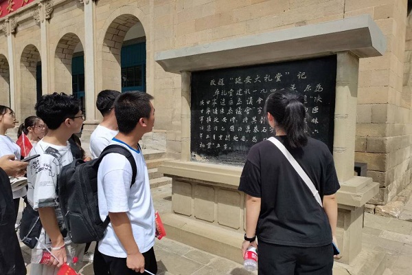 队员们首先在大礼堂门口阅读碑记,了解了大礼堂充满革命精神的“前世今生”,在工作人员的介绍下,队员们更详细的了解了大礼堂的历史以及当时革命先辈工作的艰苦环境,同时学习了边区第二届参议会第一次会议通过的《陕甘宁边区抗战时期施政纲领》,对我党在陕甘宁边区的工作有了更清晰的认识。随后,在工作人员的带领下,队员们参观了大礼堂内部及其周围建筑,在革命工作者当初居住过的窑洞里感受当时艰苦的条件,深刻体会到了当初革命工作开展的艰辛。参观结束后,队员们在大礼堂门口集合,分享自己此次参观的收获并合影。