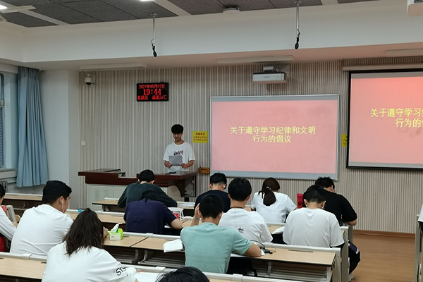 “高校立身之本在于立德树人,学风建设是高校立德树人的重要载体”。学风建设于一所高校而言至关重要,对于学院,其重要性更是不言而喻。为进一步落实优良学风建设政策,弘扬优良学风建设传统,加强学院学风建设,提高同学们对于学风建设的更深层认识,将学风强化落在实处,学习部同学于5月7日晚在自习室向同学们发起关于遵守学习规律和文明行为的倡议。漆政君、黄博宇两位同学宣读了相关倡议书。