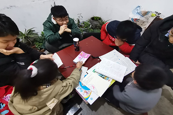 志愿者们为孩子们辅导作业