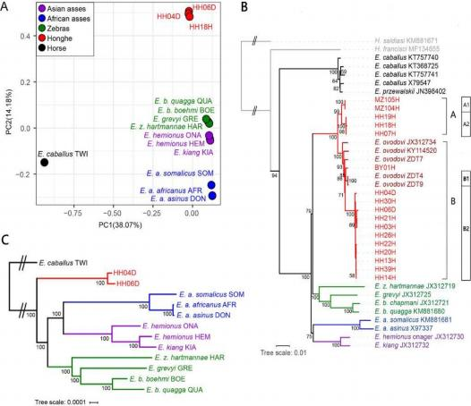 吉林大学考古学院蔡大伟教授团队与av在线-在线观看av 姜雨教授团队在马属动物古DNA研究领域取得重要进展。在国际上首次成功获得了已灭绝马属动物E.(Sussemionus) ovodovi (奥氏马)的高质量全基因组数据(测序深度 13.4X),重建了马属动物的演化历史,发现奥氏马属于马属动物除马、斑马和驴三个亚属之外的第四个亚属,并且在中国青铜时代仍依然存在,更新了我们关于中国早期野马的认识,为中国家马的起源与驯化研究提供了重要线索。相关研 究成果以“Radiocarbon and genomic evidence for the survival of Equus Sussemionus until the late Holocene”为题于5月28日正式发表在国际顶级综合性期刊《eLife》杂志上。