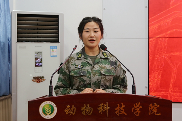 学院优秀退伍本科生,曾服役于火箭军某部的史国庆同学回顾了自己应征入伍的初衷,讲述了在军营生活的故事。从懵懂的“新兵蛋子”到演练场里的“战狼”,从第一次学习叠“豆腐块”到熟练掌握各项军事技能,这段经历让他飞速成长。经过脚踏实地的历练和拼搏,在退役时获得了所在单位年度“四有”优秀士兵的荣誉表彰。重回校园后,他将秉持“退伍不褪色”的军人传统,把当代军人的精神熔铸在学习生活中,继续砥砺前行。学院优秀退伍研究生,学校军训教导队教官白军霞分享了自己在武警某部服役期间的经历,回顾在艰苦边远地区服役的难忘军旅时光。鼓励同学们将个人理想与强国梦、强军梦紧密融合,勇敢追梦,在青春的赛道上跑出当代青年的最好成绩。