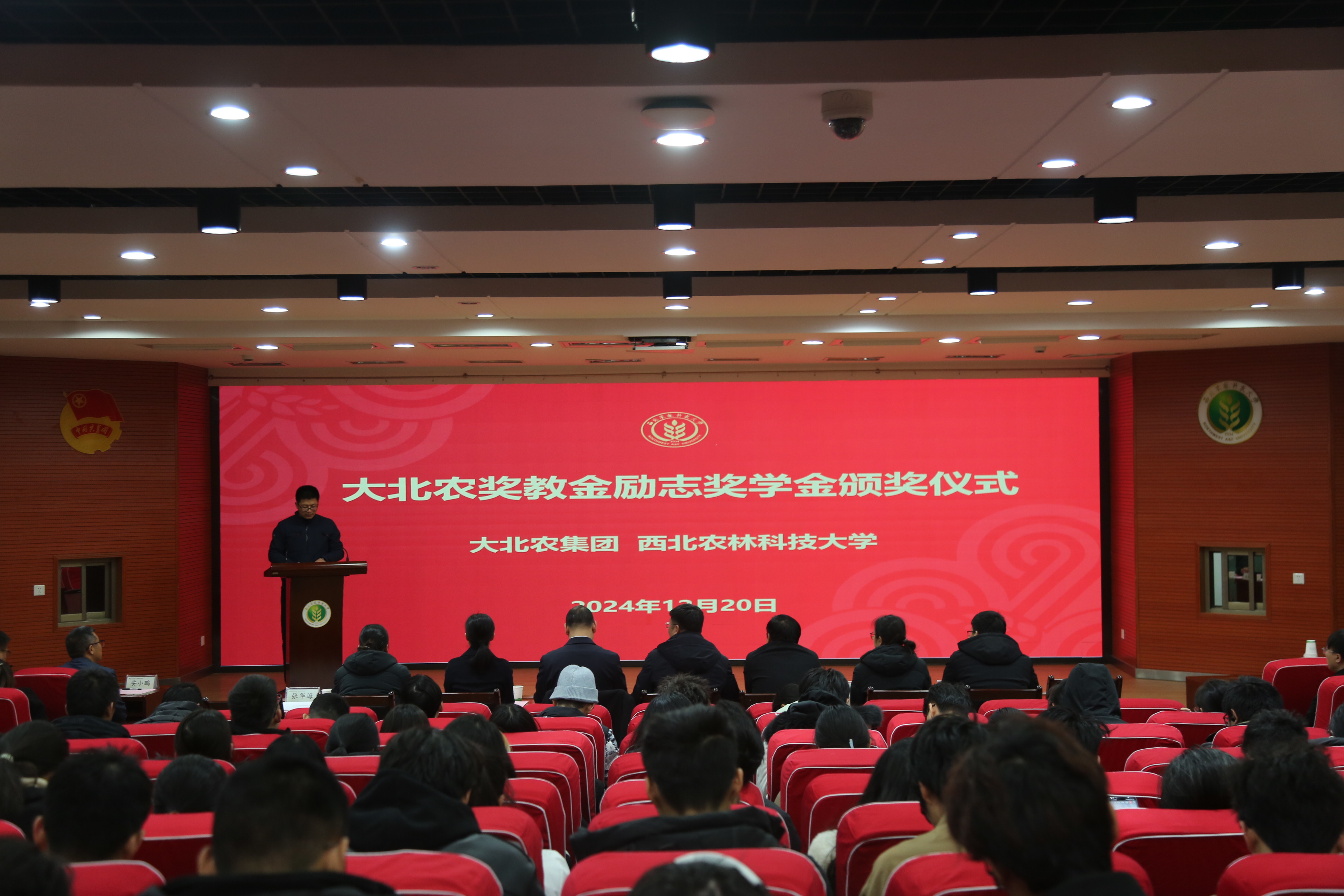 12月20日下午,2023-2024学年大北农奖教金、励志奖学金颁奖仪式在北绣山北报告厅举行。大北农集团陕西区总裁宋安石、av在线 党委书记曹军会、党委学工部副部长邓亚丽、教育发展基金会副秘书长殷彦平等出席颁奖仪式。颁奖仪式由动物医学院副书记张华海主持。