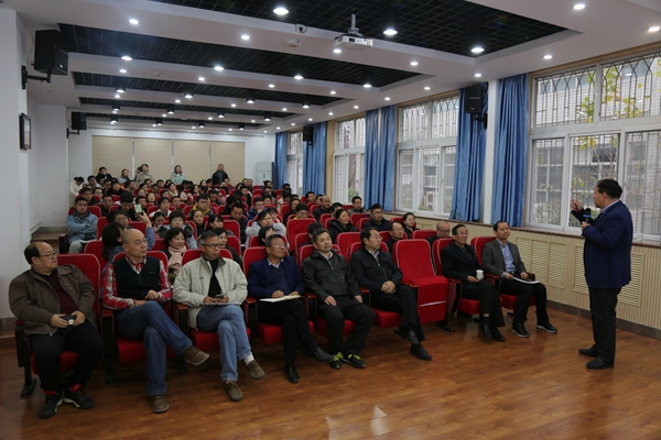 11月27日,学院在107会议室举办“非瘟背景下‘猪禽互动’与健康养殖”主题报告,家禽精准营养与健康养殖团队负责人高玉鹏教授应邀担任主讲人,100余名师生参加了报告会。会议由学院党委书记曹军会主持。