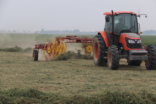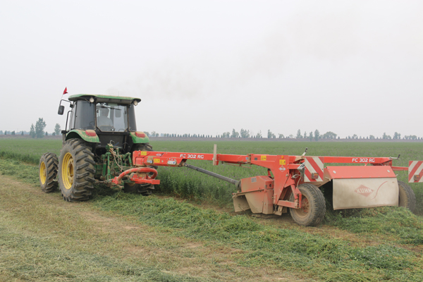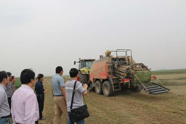 5月5日,国家牧草产业技术体系咸阳牧草综合试验站在陕西大荔县爱德生态农业有限公司召开苜蓿收获观摩会。学校科技推广处副处长吴锋、科学技术发展研究院重大项目处处长孙楠,学院院长姚军虎教授、副院长呼天明教授,水保所程积民教授,咸阳牧草综合试验站站长杨培志副教授及草业科学系杨云贵副教授等参加了会议并现场观摩了苜蓿机械化收割、搂草、打捆等生产过程。
