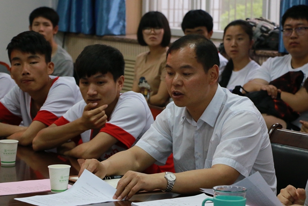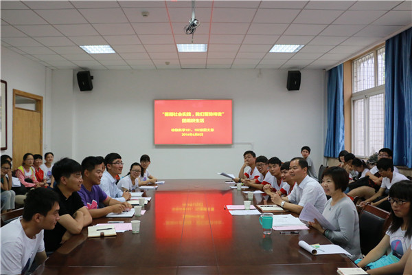 为贯彻党的十八大、十八届三中、四中、五中全会精神和习近平总书记系列讲话精神,充分发挥实践育人作用,培育和践行社会主义核心价值观,进一步引导青年学生在实践中受教育、长才干、做贡献,同时利用团组织生活的展示与学习平台,6月8日下午,动科学院动科151班、152班将基层团组织生活与社会实践交流学习相结合,召开以“暑期社会实践,我们蓄势待发”为主题的组织生活活动,校团委书记曹军会应邀出席,并与团支部广大青年学生亲切交流。马克思主义学院副教授胡尊让、学院党委副书记王晓娟、团工委书记张士军、2015级研究生“实践达人”赵海东及2014级本科生杨运幸(曾获暑期社会实践“三下乡”二等奖)参加了此次活动。