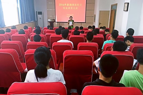2016年暑期顶岗实习即将开始,78名学生将赴陕西、四川、河南、广西、江苏、辽宁等14个省份开展工作,为确保学生高高兴兴出发、认认真真实习、平平安安归来。7月1日下午,学院在107会议室召开2016年暑期顶岗实习安全动员大会,学院党委副书记王晓娟、辅导员胡巧娟及70余名学生参加了此次会议。