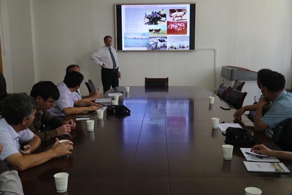 近日,塔吉克斯坦农业部科技局负责人法兹利博士、农业局农场负责人萨勒金博士、塔吉克斯坦农业科学院负责人阿博金博士和图契博博士一行5人来校考察调研。西安外国语学院李建良教授、杨凌农业示范区国际合作局唐庆华、av在线 羊产业技术创新团队负责人曹斌云教授等参加了座谈会。