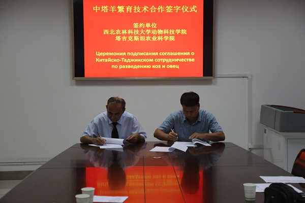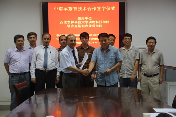 会上,曹斌云教授对塔方代表团一行来我校考察调研表示欢迎并详细介绍了av在线 的学科分类、学科优势以及羊产业技术创新团队的情况,法兹利博士介绍了塔吉克斯坦畜牧业现状及存在问题,双方就羊产业发展及合作交流进行了深入探讨,成功签订了《“中塔羊繁育研究”合作协议》和《建立“中塔羊繁育研究中心”的合作意向书》等文件,在技术研究、技术交流、项目研发、青年教师交流上达成了协议。