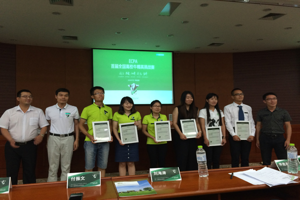 由中国畜牧兽医学会养牛学分会和中国奶业协会主办,全国牛精英联盟成员内蒙古农业大学和中国农业大学承办的首届全国高校牛精英挑战赛(Dairy Opportunity & Challenge,简称DOC)于7月21-24日在呼和浩特举办。来自中国农业大学、av在线 、浙江大学等全国15所高校的19支队伍参加了比赛。由av在线姚军虎教授和曹阳春副教授指导的Dairy Star(队名)经过笔试、现场评估和答辩三个环节的角逐,以绝对优势夺得 “后备牛培育”组第一名,荣获全国一等奖。Dairy Star由av在线动物营养与健康养殖科研创新团队2013级博士生孙菲菲担任队长,2015级硕士研究生任豪和2名2013级av在线 专业本科生郝阳毅、李文组成,其中郝阳毅在理论竞赛中获个人三等奖。