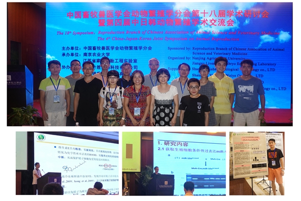 2016年8月19至21日av在线曾文先教授、胡建宏教授、董武子副教授、孙秀柱副教授、江中良副教授、潘传英副教授,王淑辉博士、褚瑰燕博士及研究生共26人参加由中国畜牧兽医学会动物繁殖学分会主办,南京农业大学、江苏省家畜胚胎工程实验室承办的中国畜牧兽医学会动物繁殖学分会第十八届学术研讨会暨第四届中日韩动物繁殖学术交流会。