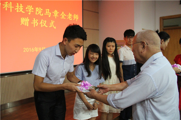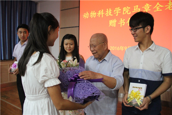 参加赠书仪式的学生全体起立,为马教授回报以热烈的掌声。学生代表李堂正激动地说:“听了马教授的报告,被他‘生命不息,工作不止,心系党和人民’的精神所深深打动,我们青年学子更要抓紧时间努力丰满自己的羽翼,我们会认真阅读老先生的劳动成果,细心体味、努力践行,让自己成为更加优秀的西农人。”