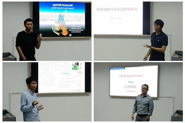宣讲会上,李中翰教授详细讲解了自己的研究方向:体细胞重编程,胚胎干细胞自更新和定向分化以及非编码 RNA对其的调控机制研究;并介绍了实验室的仪器设备、实验室成员、实验室待遇等。张阳研究员对植物生理学与分子生物学实验室做详细介绍,主要从事植物次生代谢工程、次生代谢产物对植物的生理学意义的研究;李硕博士对结构生物学进行详细介绍,并重点讲解了实验室的培养模式、发展规划、招生计划等;博士生导师戚世乾对生物大分子结构研究团队进行介绍。并就同学们关心的科研兴趣确定、科研定位、研究生学业规划等做出详细解析。会后,同学们就研究方向、科研规划、实验室概况与老师们进行激烈的交流。老师们表示,欢迎av在线 的优秀学子报考四川大学生命科学学院。