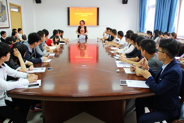 为提升2017届毕业生求职技能,增加求职竞争力。9月23日上午,学院在104会议室开展2017届毕业生求职训练营——模拟面试,行业资深人力资源项目经理许辉女士应邀作为主讲嘉宾,学院党委副书记王晓娟、辅导员及2017届求职训练营全体营员参加了此次活动。