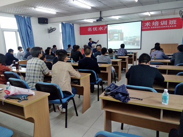 培训班邀请江苏省泰州市水产服务站曹福余主任、安康金诺水产科技公司单世涛总经理分别作了河蟹养殖、匙吻鲟苗种繁育方面的培训,就河蟹养殖的健苗选育、池塘改造、水质管理、饲料供给以及匙吻鲟苗种繁育的技术要点进行了专题培训。室内培训结束后,参加培训的学员参观了试验站的匙吻鲟养殖现场和苗种繁育设施,并专程参观了安康汉水兄弟公司的匙吻鲟苗种池塘培育现场。