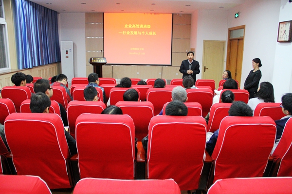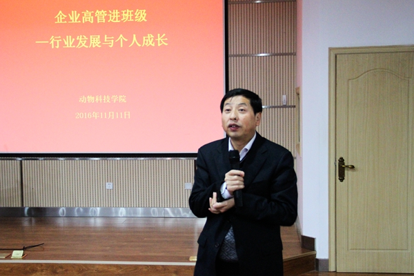 罗平涛总经理向同学们介绍目前畜牧行业的发展现状,指出随着国家对畜牧业的支持力度不断加大,畜牧行业的就业前景也越来越广,对人才的需求也越来越紧迫。罗平涛总经理通过举例山东凤祥股份有限公司白羽肉鸡的养殖发展,指出先进的生产设备、一流的养殖技术、干净的饲养环境是现在现代养殖业的真是写照,并对比了现代畜牧业与传统畜牧业,指出机械化、智能化、网络化是现代畜牧行业的发展的核心竞争力。同时,他结合自身多年的职业发展经验,从企业需求角度出发,建议同学们工作要有激情,始终保持活力;要常怀感恩之心,养成常态学习的好习惯,不断提升自己的能力和水平。