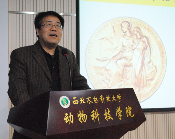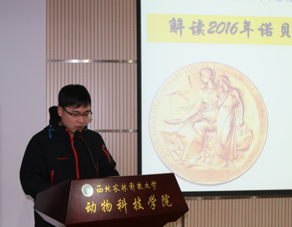 12月2日晚19:30,由中国细胞生物学学会、陕西省细胞生物学学会倡导,av在线曾文先教授团队主办的“2016年诺贝尔奖生理学或医学奖解读科普讲座”在学院107报告厅举行,本次报告会共吸引了115名本科生,146名研究生共计261名学生参加。av在线党委书记赵延安老师、陕西省细胞生物学学会理事、av在线生殖生物学与细胞工程研究团队带头人曾文先教授,“陕西青年科技新星”蓝贤勇教授等来自共4个研究团队的8名骨干老师出席了本次大型讲座。本次科普讲座,由av在线生殖生物学与细胞工程研究团队骨干成员、中国细胞生物学学会科普工作者潘传英副教授担任主讲,由研究生辅导员李方龙老师主持。学院党委书记赵延安同志为报告会致辞。