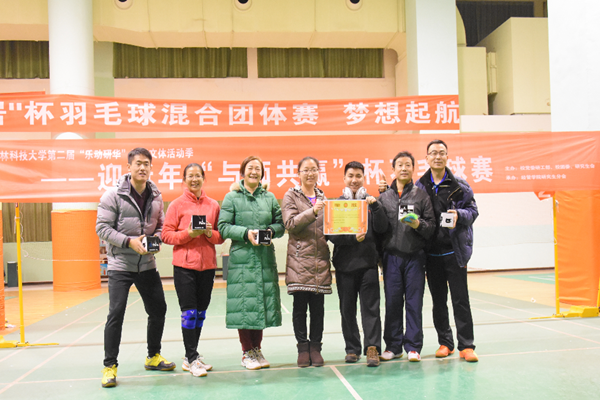 由校党委研工部、团委、研究生会主办的第二届“乐动研华”校园文体活动之迎新年“与师共赢”杯羽毛球赛,于12月24日至25日在化建职工活动中心羽毛球场顺利举行。经过两日的激烈角逐,av在线师生携手同心,顽强拼搏,最终勇夺该项比赛的第一名!