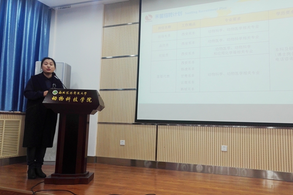3月24日上午,学院在107会议室举办禾丰集团2017校园宣讲会,我校优秀校友、西安禾丰饲料科技有限公司人事资源经理张婷及动科、动医学院的部分毕业生参加了此次招聘会。