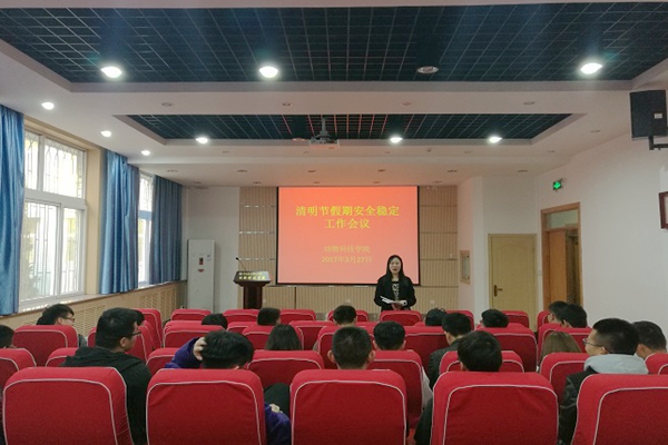 为切实做好清明节假期安全稳定工作,保证同学们度过一个安全、充实、快乐的假期,3月27日下午,学院在107会议室召开清明节假期安全稳定工作会议,学院专兼职辅导员及各班班长、团支部书记参加了会议。