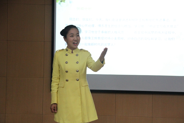 培训会上,刘威老师分别从什么是演讲、为什么要学演讲、如何提高演讲水平等三个方面进行了深入细致的讲解,并以王辉教授先进事迹以及王功娜事迹等与同学们进行了互动,现场气氛热烈。