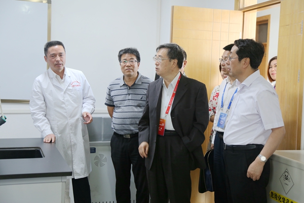 预评估专家组组长于德弘教授检查本科教学实验室