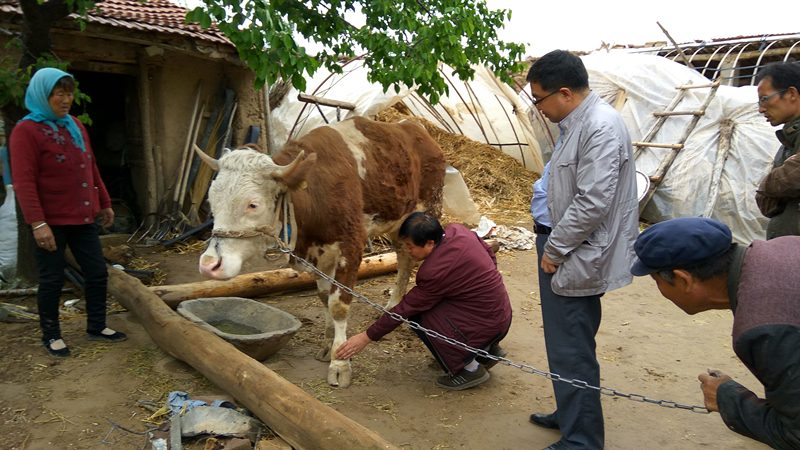 在位于中卫市海原县的宁夏海原华润农业有限公司,昝林森教授一行现场查看了企业养殖的西秦杂交后代的生长发育情况,了解了存在的问题,针对性地提出了改进意见。在与海原县委副书记兼海原华润农业有限公司董事长濮实、县农牧局领导及公司高管和技术人员座谈时,就肉牛良繁引进繁育、精准饲养、常见病防治、重大疫病防控等进行了深入讨论交流,提出了加强良种繁育、节本增效和建立重大疫病防控预警体系的基本思路和工作要求。期间,昝林森教授一行还在县农牧局和华润公司负责人陪同下,深入当地养牛扶贫户指导肉牛养殖繁育和饲养管理工作,对患病牛进行了通过现场检查,提出了诊疗方案。