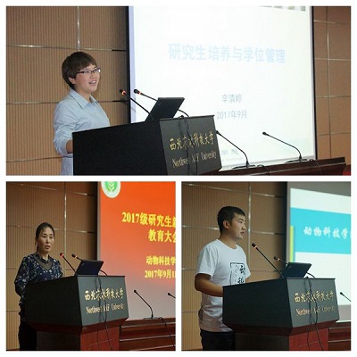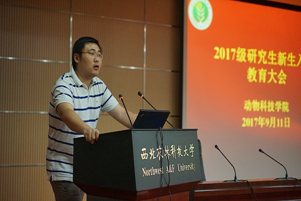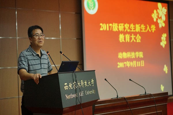 姚军虎教授对全体2017级研究生加入动科大家庭表示了欢迎,并从学院发展规划与学科建设方面深刻诠释了av在线创建世界一流av在线 的发展战略;赵延安书记引经据典,从哲学的角度阐述了校情校史,并以“畜德自牧,富饶天下”为中心向同学们展示了av在线 深厚的文化底蕴;王晓娟副书记从人身和财产安全、车辆使用安全、信息安全、宿舍安全、实验室安全等5个方面,结合实例说明了安全稳定的重要性,提醒大家提高警惕,保护自己;院长助理凌飞强调了学术诚信的重要性,通过四个事例向同学们讲述了学术造假的严重后果,并要求全体研究生要将学术诚信和学术道德规范摆在科研工作的第一位;研究生秘书辛清婷、研究生干事张飞分别从研究生培养与学位管理、培养计划制定和课程规划等方面详细解读了学校和学院的相关政策;辅导员张涛和研究生会团工委副书记李亚新就资助制度和日常管理条例、研究生会职能向2017级研究生做了介绍。
