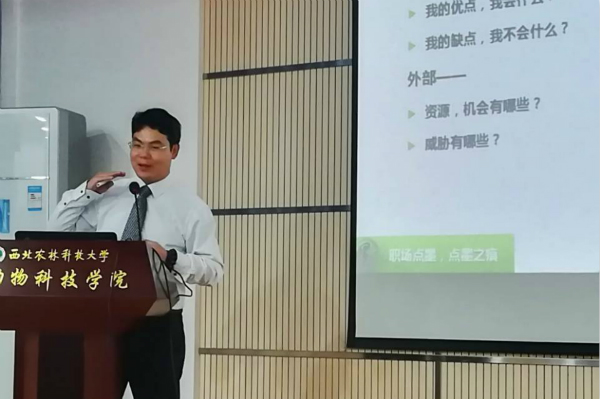 为了帮助学生了解职场形势,找准自身定位,并引导学生树立合理的职业生涯规划,10月10日晚7点,由学校就业指导中心主办,动科学院承办的就业大学堂之“跨过职场懵懂期”专题讲座在av在线 107会议室举办。明康汇生态农业集团总裁助理、海亮地产集团区域人事行政总监吴进应邀为近百名学生做报告。