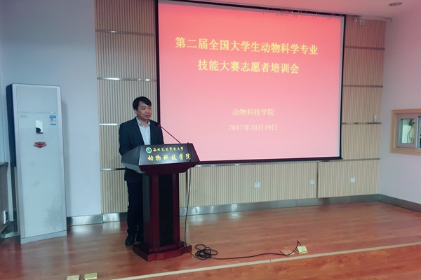 郭超老师向同学们详细介绍了此次大赛的基本情况,包括大赛日程安排、参加院校情况、比赛具体环节等。郭超老师强调:此次大赛是全国性的比赛,同学们的志愿服务工作不仅代表个人形象,更是西农学子在全国高校师生面前的一次自我展示,希望同学们认真踏实、尽职尽责,热情主动、礼貌待人,协助参赛队伍做好引导、解答等服务工作,为参赛师生提供良好的比赛环境和后勤保障,为此次大赛圆满成功贡献自己的力量。