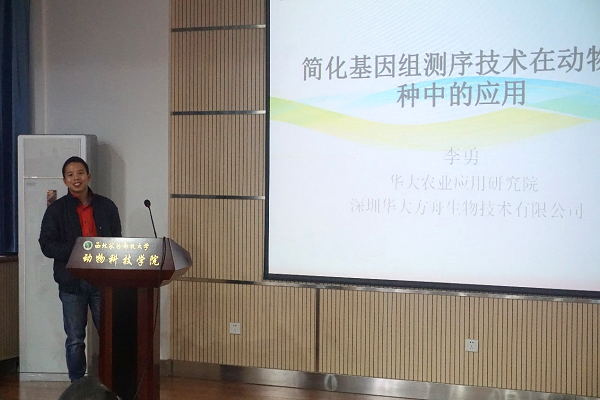 受动物脂肪沉积与肌肉发育实验室杨公社教授邀请,深圳华大方舟生物技术科技有限公司董事长李勇来av在线进行学术交流,并于动科院107报告厅为av在线师生带来了题为“基因组学在动物育种中的应用”的精彩报告。