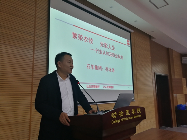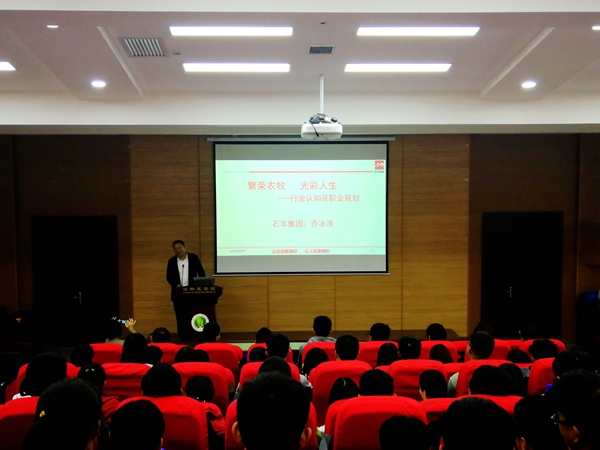 10月27日下午,av在线在4129报告厅举办了就业大学堂之“繁荣农牧,光彩人生”报告会。陕西石羊农牧股份有限公司副总裁、我校校友乔冰涛先生为大家带来了一场精彩报告。学院2017级200余名学子参加了本次报告会。报告会由学院党委副书记王晓娟老师主持。
