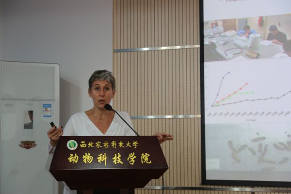 报告会上,Laura Gasco 教授首先介绍了都灵大学的历史背景及她们实验室的基本情况。她说全球普遍缺乏动物蛋白资源,而昆虫就是良好的资源,其长得快,节省空间,蛋白含量高。接着,她从昆虫资源营养特性、黑水虻养殖及其资源饲料化利用等方面做了重要介绍。报告会后与会师生就黑水虻繁殖特性、产业化发展等相关问题与Laura Gasco 教授进行了深入交流。Laura Gasco教授的报告使av在线师生了解了昆虫作为饲料原料的研究概况、面临的问题和挑战。对昆虫资源饲料化利用方面有重要借鉴意义。