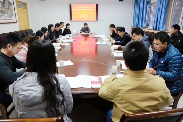 11月16日下午,学院在104会议室召开党支部书记例会暨2017年党支部书记集中轮训班开班,党委书记赵延安、各党支部书记、辅导员参加会议,党委副书记王晓娟主持会议。